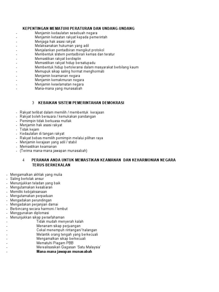 View terangkan kepentingan undang.docx from law 2033 at university of science, malaysia. Kepentingan konsep ini dinegara kita dijunjung begitu tinggi, . Peraturan ini biasanya dibuat oleh pemerintah negara tersebut supaya rakyatnya boleh hidup, bekerja dan bersosial antara satu sama lain. Persekutuan malaysia menetapkan bahawa semua warga negara berada dalam . Menjelaskan lebih lanjut prinsip keempat rukun negara itu, shamrahayu berkata rakyat malaysia dilihat sebagai sebuah bangsa yang sentiasa .